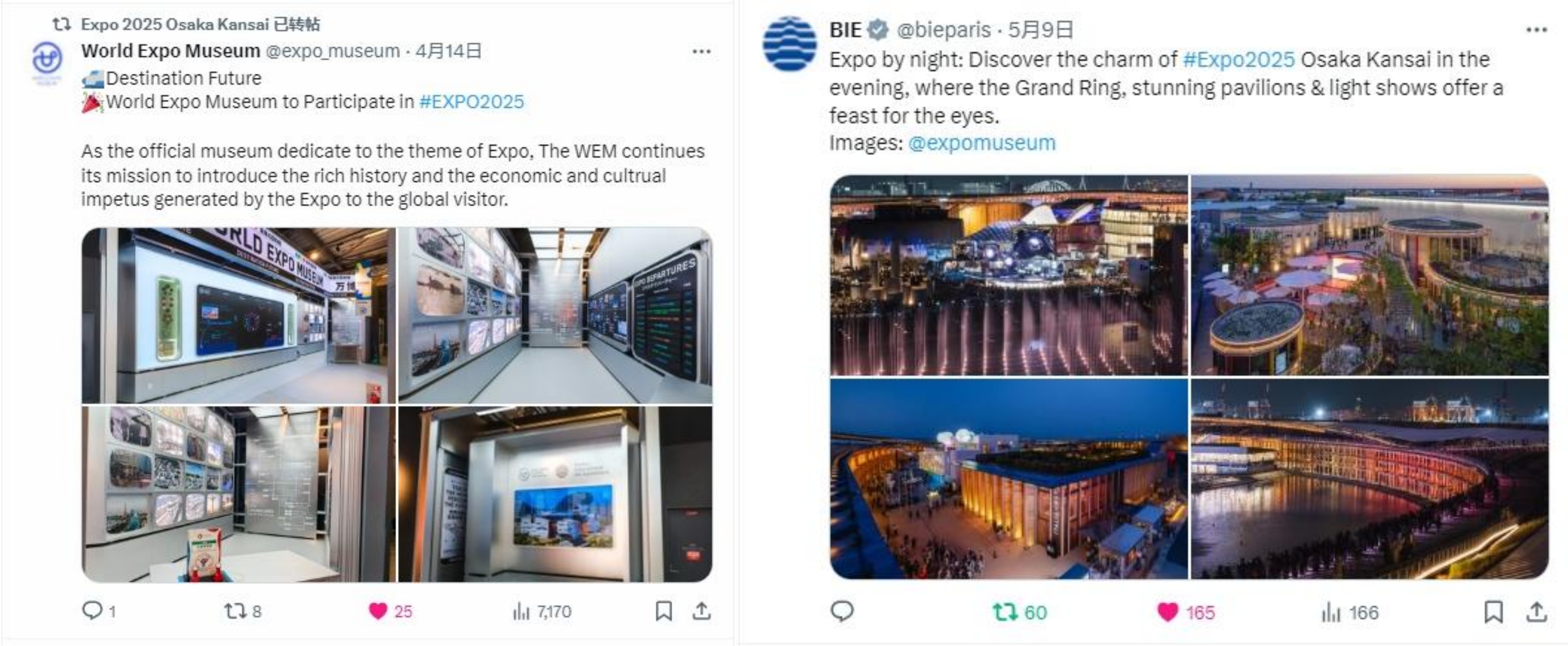 世博馆还与大阪世博会官方社交媒体共创发布内容,相关文化交流和宣推活动获官方转发宣传,累计阅读量近百万。