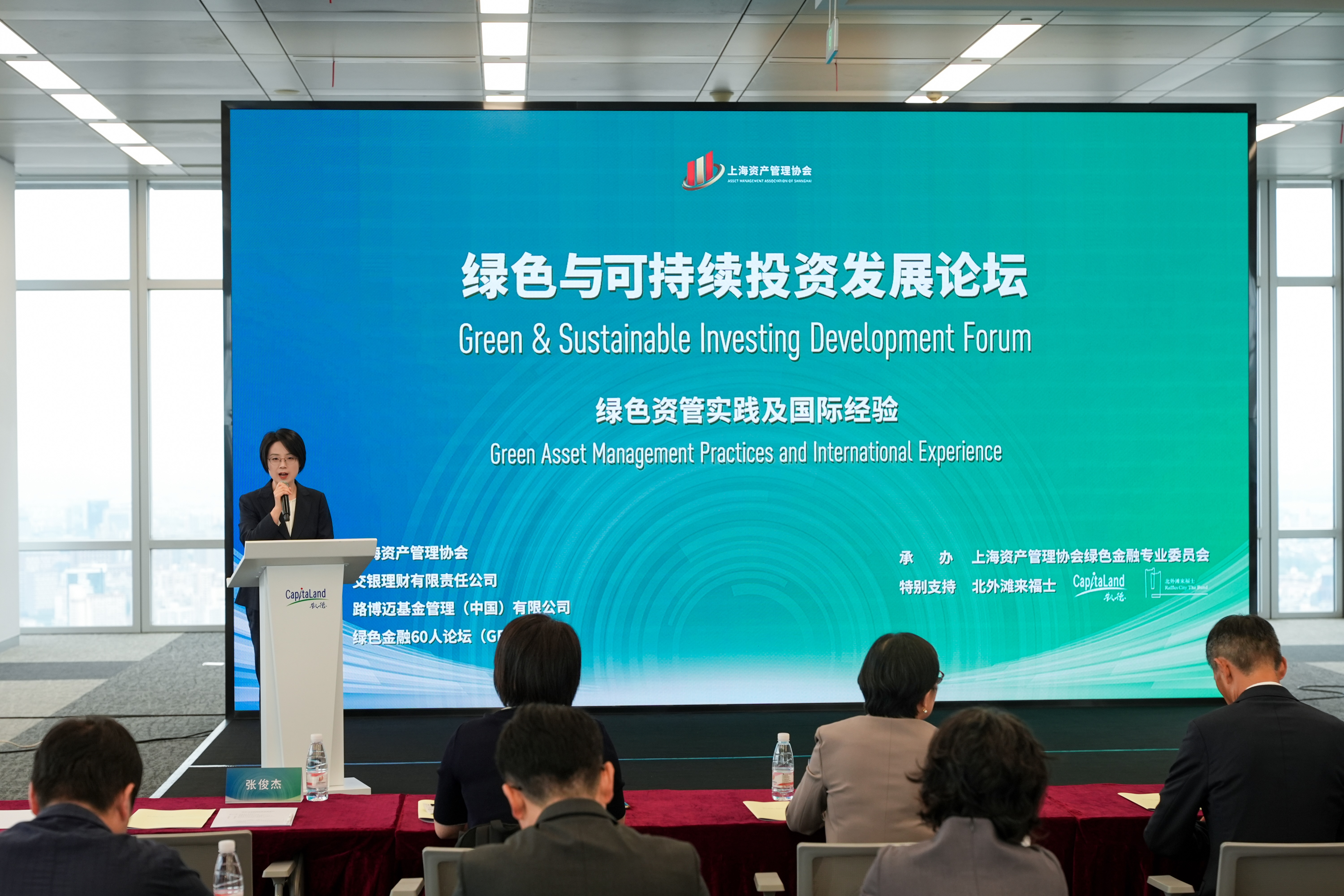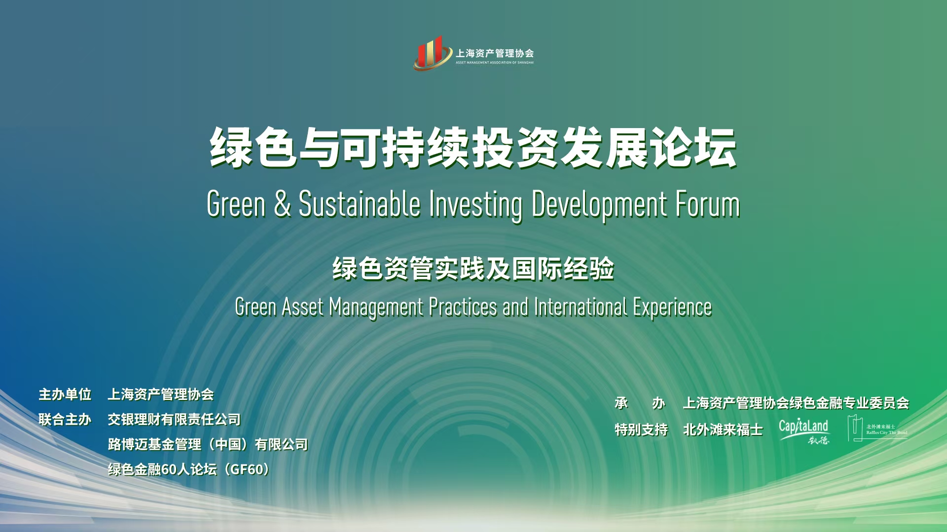 2025年10月19日下午,绿色与可持续投资发展论坛在上海市虹口区北外滩来福士圆满举办。作为“全球资产管理中心 上海国际活动周2025”专场活动之一,本场论坛由上海资产管理协会(简称“协会”)主办,交银理财有限责任公司、路博迈基金管理(中国)有限公司、绿色金融 60 人论坛(GF60)联合主办,协会绿色金融专委会承办。
