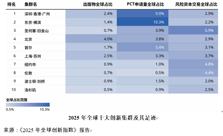 近年来,科技创新正从“单打独斗”转向“集群作战”,创新集群已成为城市参与全球竞合、发展新质生产力、带动区域高质量发展的强大引擎,东京—横滨、圣何塞—旧金山、波士顿—剑桥、巴黎—萨克雷等地区都形成了跨越行政边界的科技创新生态。《2025年全球创新集群报告》日前发布,“深圳—香港—广州”科技集群(下称“深港穗集群”)位居榜首,“上海—苏州”科技集群(下称“沪苏集群”)位居全球第6。