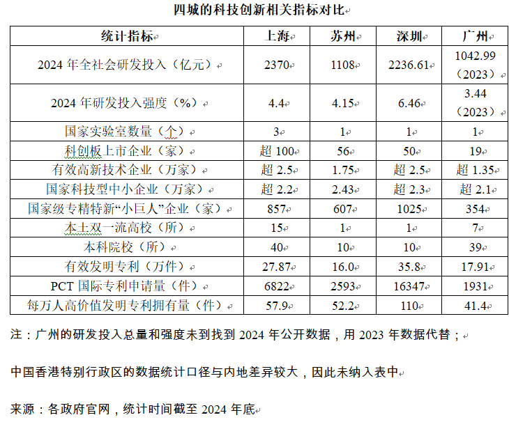 从行政层级来看,深圳和广州均属于副省级城市,与香港特别行政区的行政层级差异不大,为科技创新协作提供了便利。相比较而言,沪苏之间的行政层级差异相对较大,尽管苏州被称为“地表最强地级市”,但仍属于江苏省下辖的地级市,而上海作为直辖市,两市在政策制定、资源配置权限等方面均存在差异,一定程度上增加了科技创新协作成本。