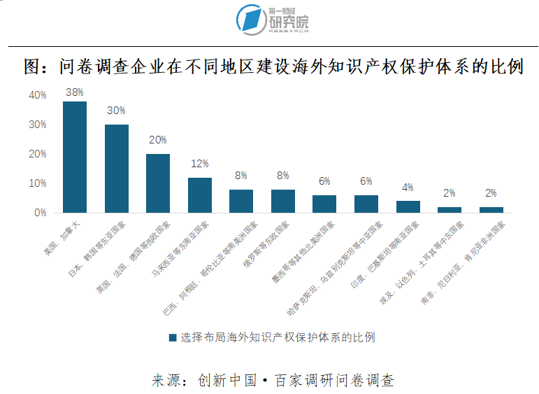 二是避免自身侵害他人的知识产权。专利侵权问题往往会影响企业在海外市场的经营活动,不利于企业的全球化。在创新中国·百家调研现场访谈中,不少企业向我们分享了降低此类风险的方法,大体思路是建立专门的知识产权团队,通过早期的风险排查,及时调整企业的专利布局与应对措施。比如,信达生物在研发药品早期就与海外团队合作,分析并检查海外各国的专利情况。