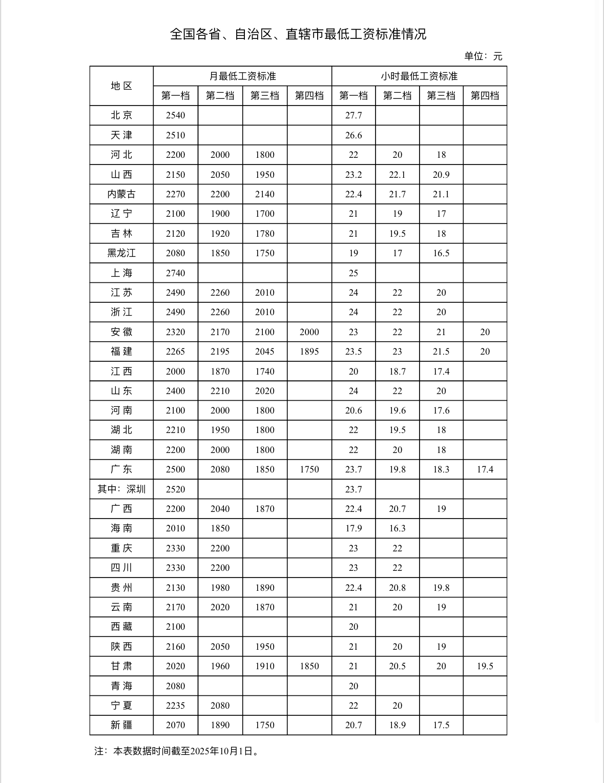 本月17日,人社部官方网站发布全国各省、自治区、直辖市最低工资标准情况(截至2025年10月1日)。数据显示,所有省、自治区、直辖市月最低工资标准第一档均超过了2000元,其中上海以2740元的标准居全国首位。