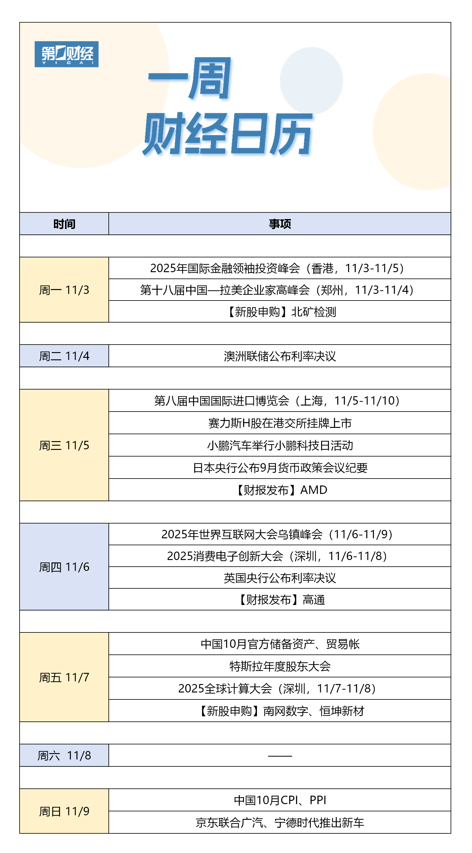 10月CPI、PPI数据将公布;进博会将开幕;特斯拉年度股东大会将召开……