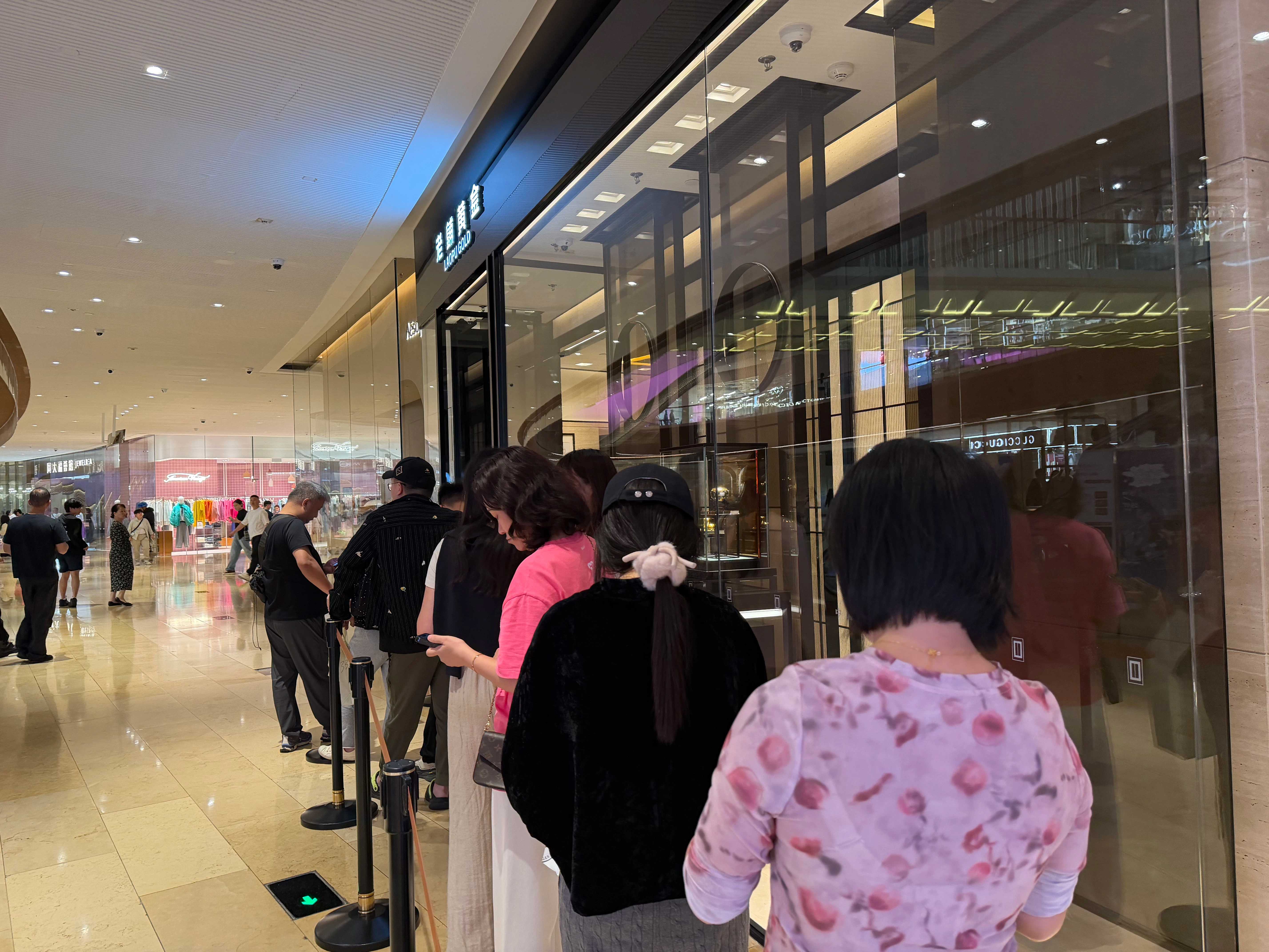 在上述老铺黄金门店,就11月1日下午时段来看,排队时间约为1小时。门店内,十字金刚杵项链、玫瑰花窗项链、点钻葫芦项链等在今年经历了几轮涨价的金镶钻产品较为受关注。第一财经记者观察发现,排队进店询价或试戴但并未立刻成交的顾客也不在少数。