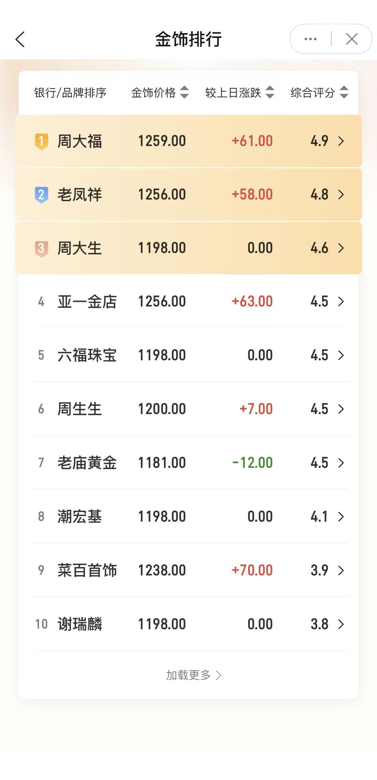金饰克价反弹,周大福、亚一、菜百一夜涨超60元/克