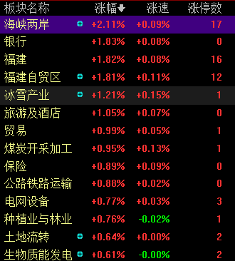 盘面上,贵金属、电池、光伏、半导体板块跌幅居前,福建本地股爆发,冰雪经济、银行、旅游板块活跃。