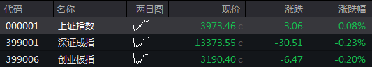 沪指低开0.08%,深成指低开0.23%,创业板指低开0.20%。