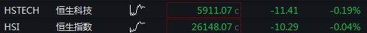 13:20 恒生科技指数午后跌幅扩大至1%,恒生指数现跌0.2%。