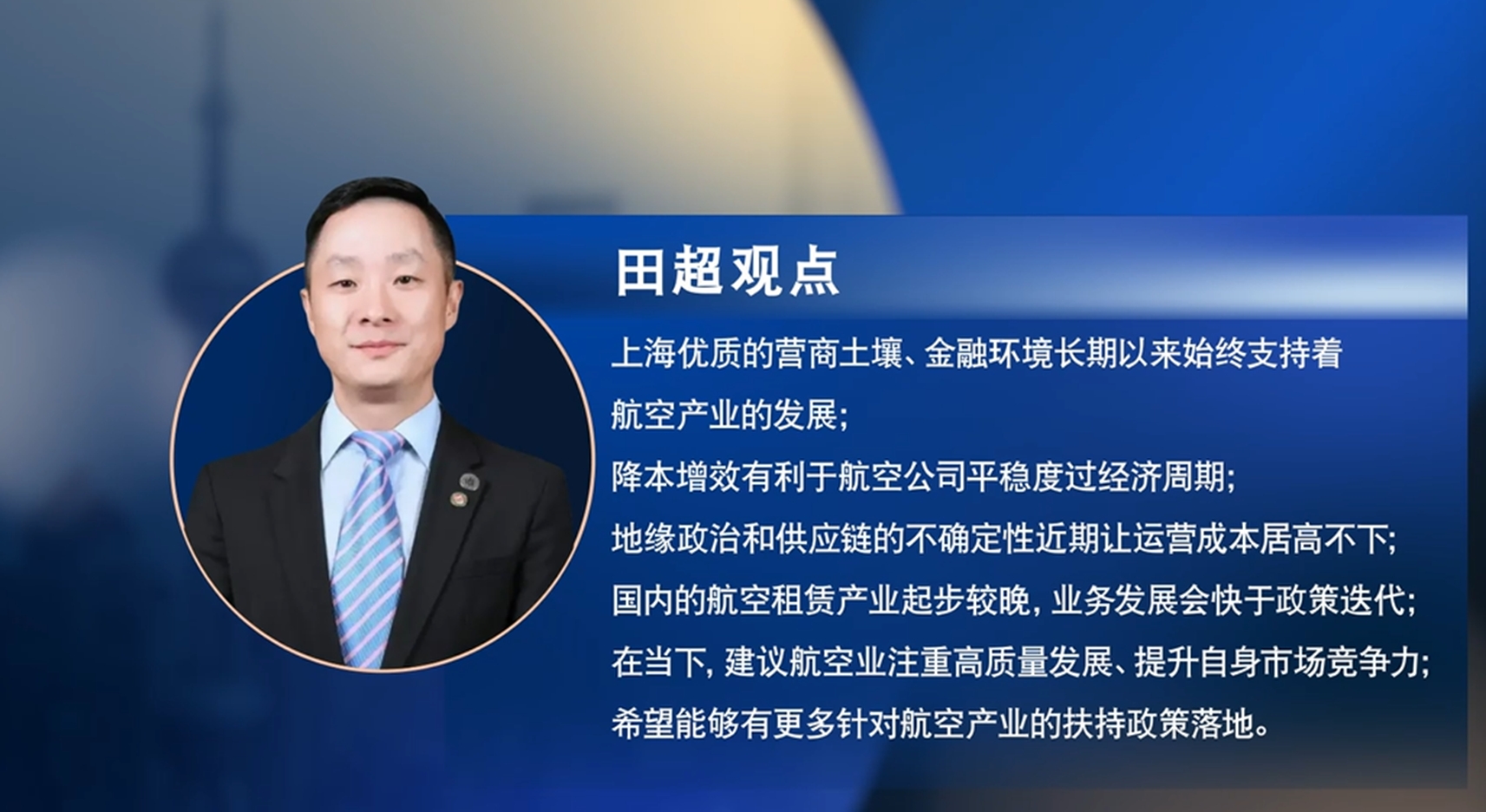 本期沙龙节目完整勾勒出了航空租赁赋能产业创新的全景蓝图。可以清晰地认识到:融合的是方向:租赁公司与航司、与制造商、与金融机构要共同担周期、共创价值;精细是未来:从飞机到发动机,从新飞机到老龄飞机,每一个环节都蕴藏着有待挖掘的管理红利;本土是机遇:中国市场和国产大飞机的发展必将是提升上海国际航空金融竞争力的关键的支点。