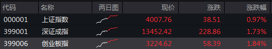 11月6日,A股市场全天震荡走强,创业板指午后一度涨超2%。截至收盘,沪指涨0.97%,重返4000点;深证成指涨1.73%,创业板指涨1.84%。