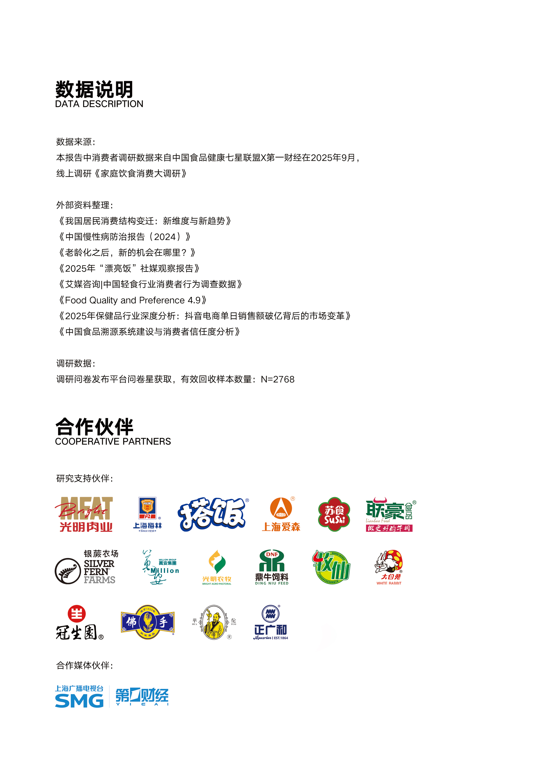 在此背景下,中国食品健康七星联盟X第一财经发起《新消费食代家庭饮食消费洞察报告》。报告以当下80后、90为核心的家庭作为饮食消费观察对象,解析新消费食代新消费食代家庭(定义:生活讲究健康、品质和效率)在生活中的饮食消费特点,洞察其家庭饮食消费习惯、特点等,并展望家庭饮食消费趋势。在此,特别感谢本次调研报告的研究支持伙伴光明肉业,为报告提供了丰富的品牌案例。