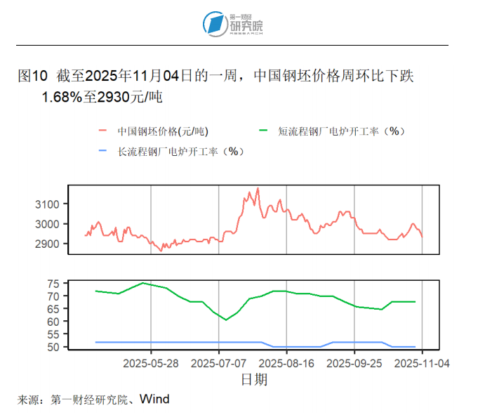 开工率方面,截至10月31日的短流程钢厂电炉开工率由一个月前的65.63%上升至67.71%;长流程钢厂电炉开工率则由一个月前的51.67%下降至50.00%。截至10月30日的全钢胎汽车轮胎开工率由一周前的65.58%下降至65.34%,高于去年同期2.84个百分点;半钢胎汽车轮胎开工率由一周前的73.67%下降至73.41%,低于去年同期5.98个百分点。