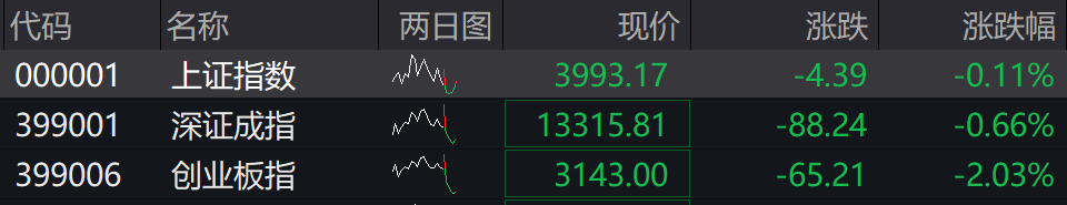 上证指数跌0.03%,深证成指跌0.59%,创业板指跌2.13%。