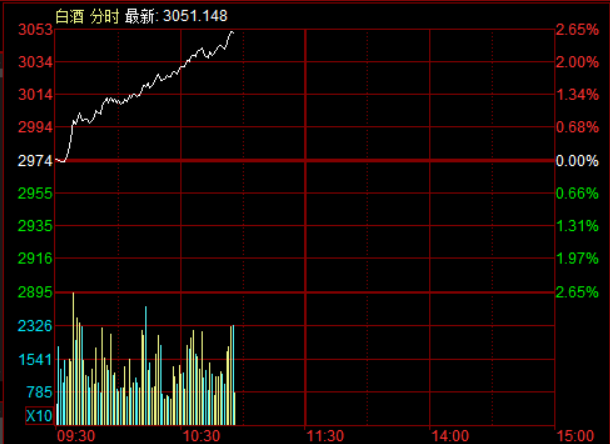 10:55 白酒股持续拉升,泸州老窖、迎驾贡酒、古井贡酒涨超5%,山西汾酒、舍得酒业涨超4%,贵州茅台、五粮液纷纷上扬。