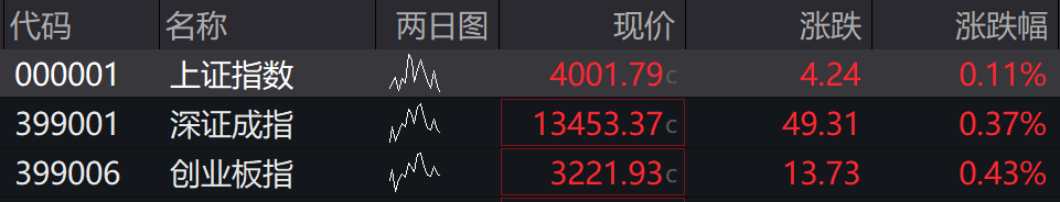 沪指高开0.11%,深成指高开0.37%,创业板指高开0.43%。