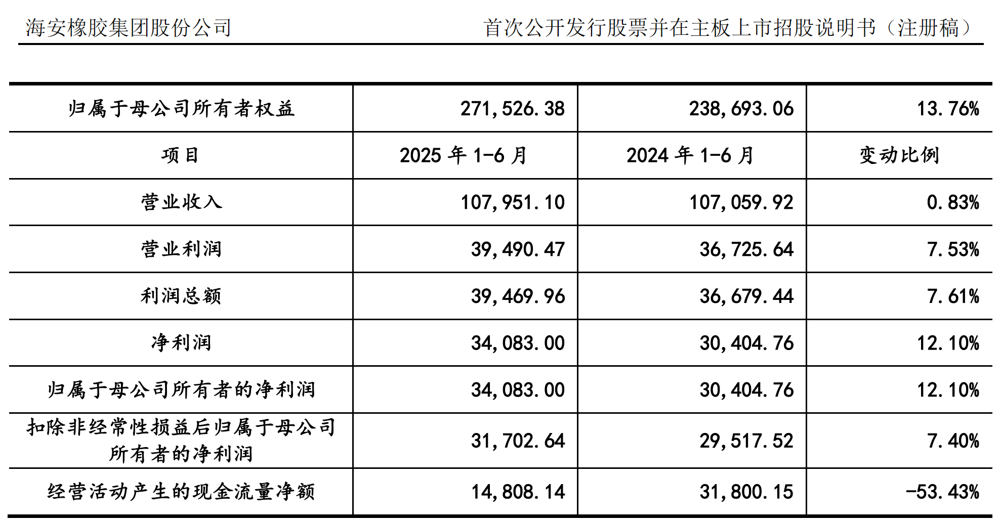 此外,海安集团也公布了2025年上半年营运数据:营业收入近10.8亿元,同比增长0.83%;净利润3.4亿元,同比增长12.1%;经营活动产生的现金流量净额1.48亿元,同比接近“腰斩”,海安集团解释这是因为加大了采购规模。