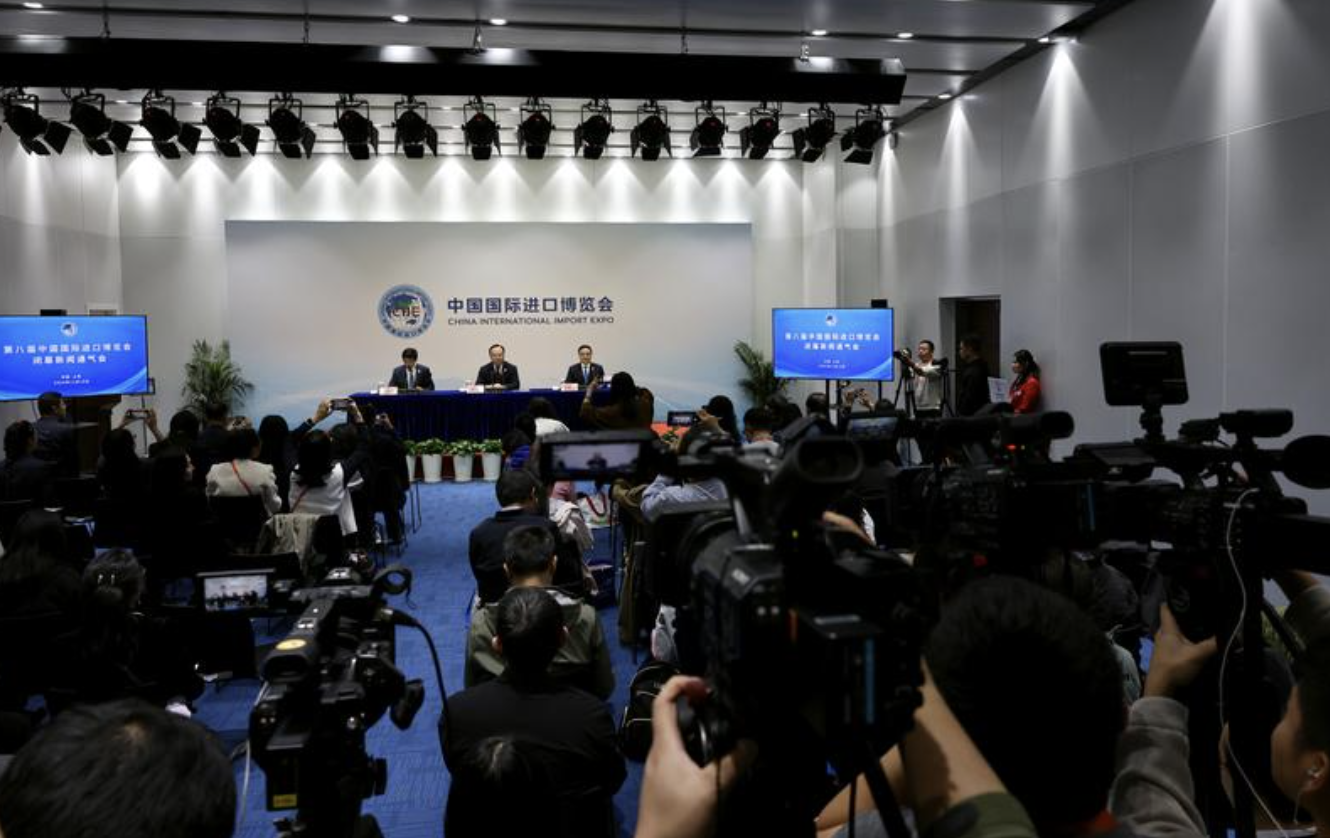 (这是11月10日拍摄的第八届进博会闭幕新闻通气会现场。图片来源:新华社)