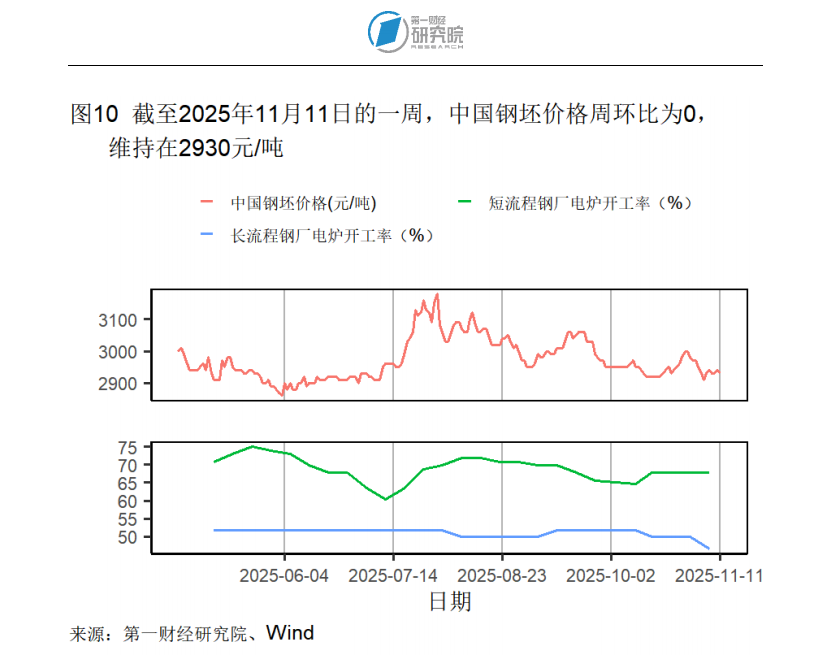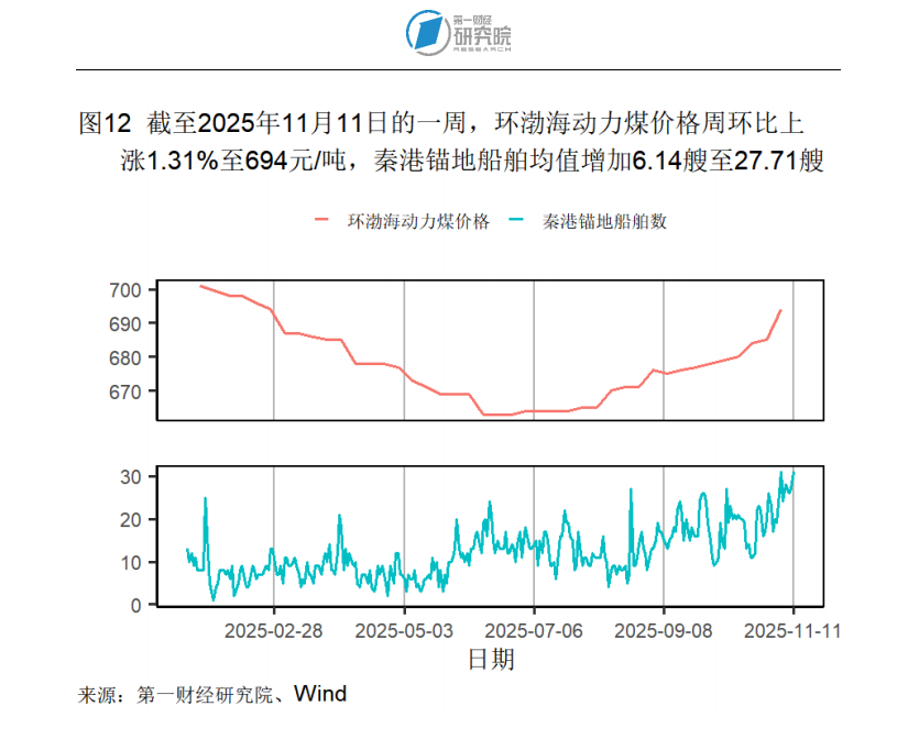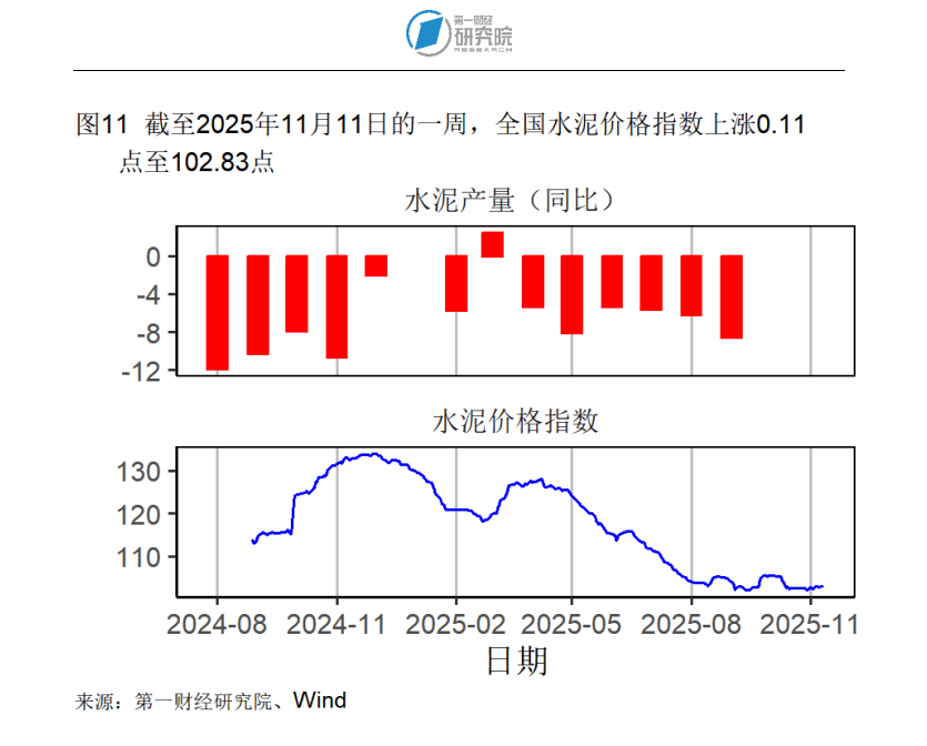 截至11月11日的钢坯价格与一周前水平一致,在过去一个月下降了0.68%,较去年同期下降了5.48%。水泥价格在截至11月11日的一周上升了0.11%,过去一个月下降了0.97%,较去年同期下降了22.46%。动力煤价格在过去一个月上升了2.51%,较去年同期下降了2.80%。