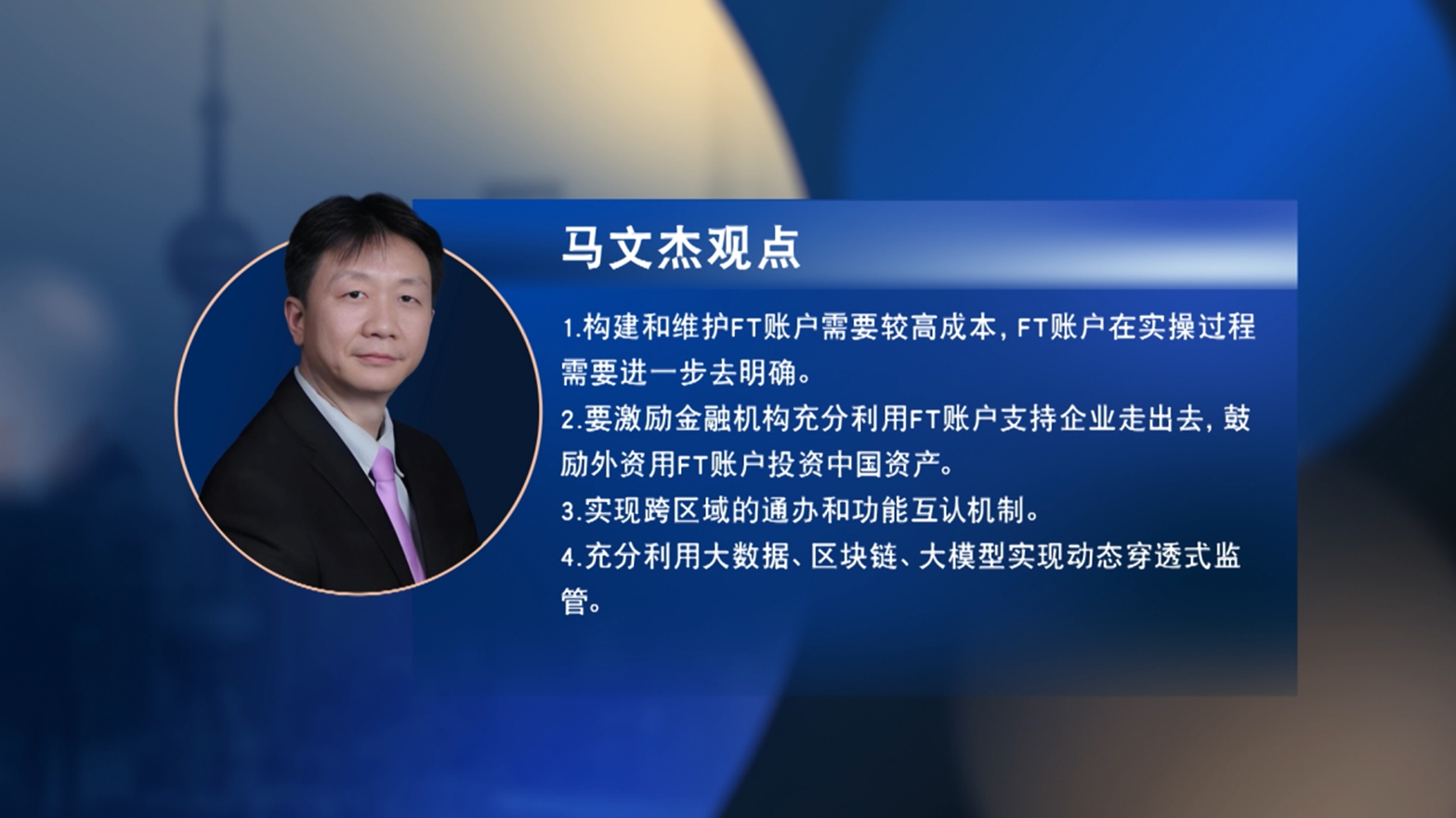 在高水平开放背景下,企业跨境经营正在升级,全球化资源配置的战略布局也在展开,如何进一步创新FT账户的实践?上海财经大学金融学院教授、上海财经大学上海国际金融中心研究院院长马文杰认为,应该继续推进FT账户,让境外人民币有更多应用场景,这样境外大量沉淀的人民币可以进一步更好的服务实体,境外投资者更加愿意持有人民币,对人民币国际化方面就有很大的促进。