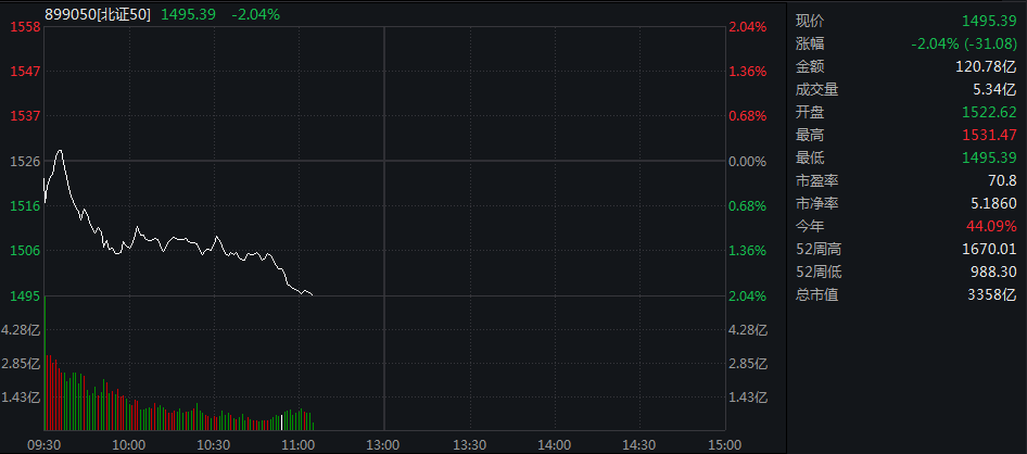 11:05 北证50跌超2%,安达科技、国货远洋跌超6%。