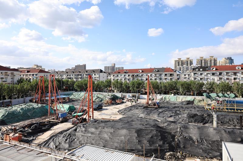 10月23日拍摄的原址旧小区拆除后正在进行更新重建的黄兴路1039弄小区建设工地,目前桩基施工已完成。新华社图