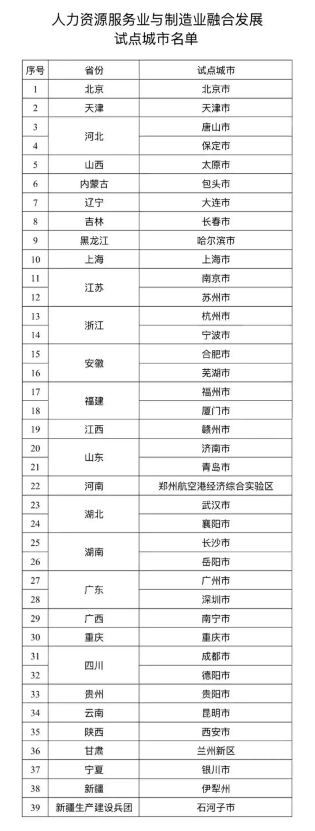 近日,人社部办公厅印发《关于做好人力资源服务业与制造业融合发展试点有关工作的通知》(以下简称《通知》),确定北京等39个城市为人力资源服务业与制造业融合发展试点城市,杭州成功入选。