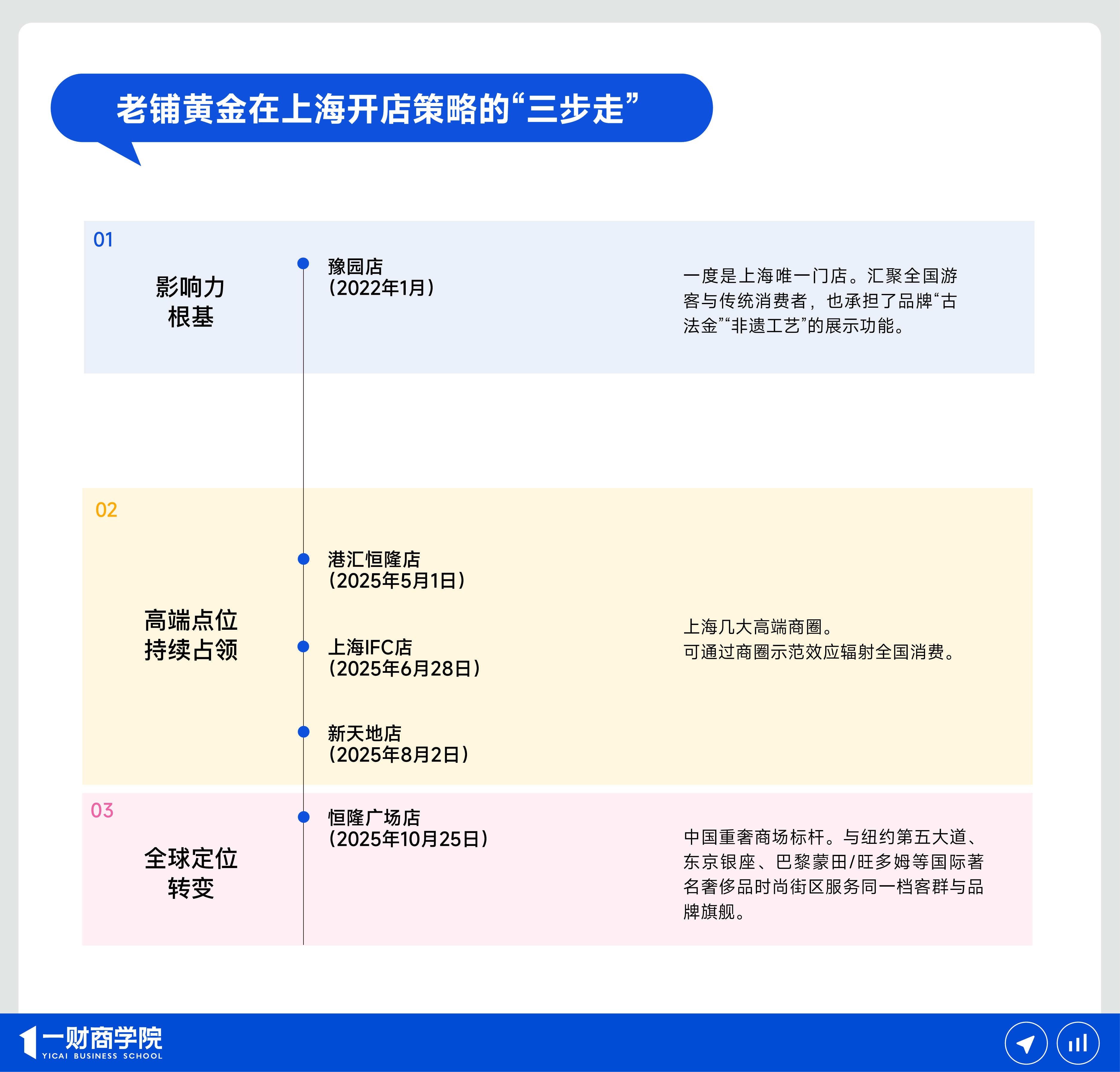 第二,在渠道策略上,老铺黄金的扩张节奏,不同于传统黄金品牌的“下沉逻辑”,它不追求铺天盖地的连锁数量,而是只进头部、只选核心地标,以门店效率和体验标准约束扩张质量,用少而精的点位撬动品牌溢价。