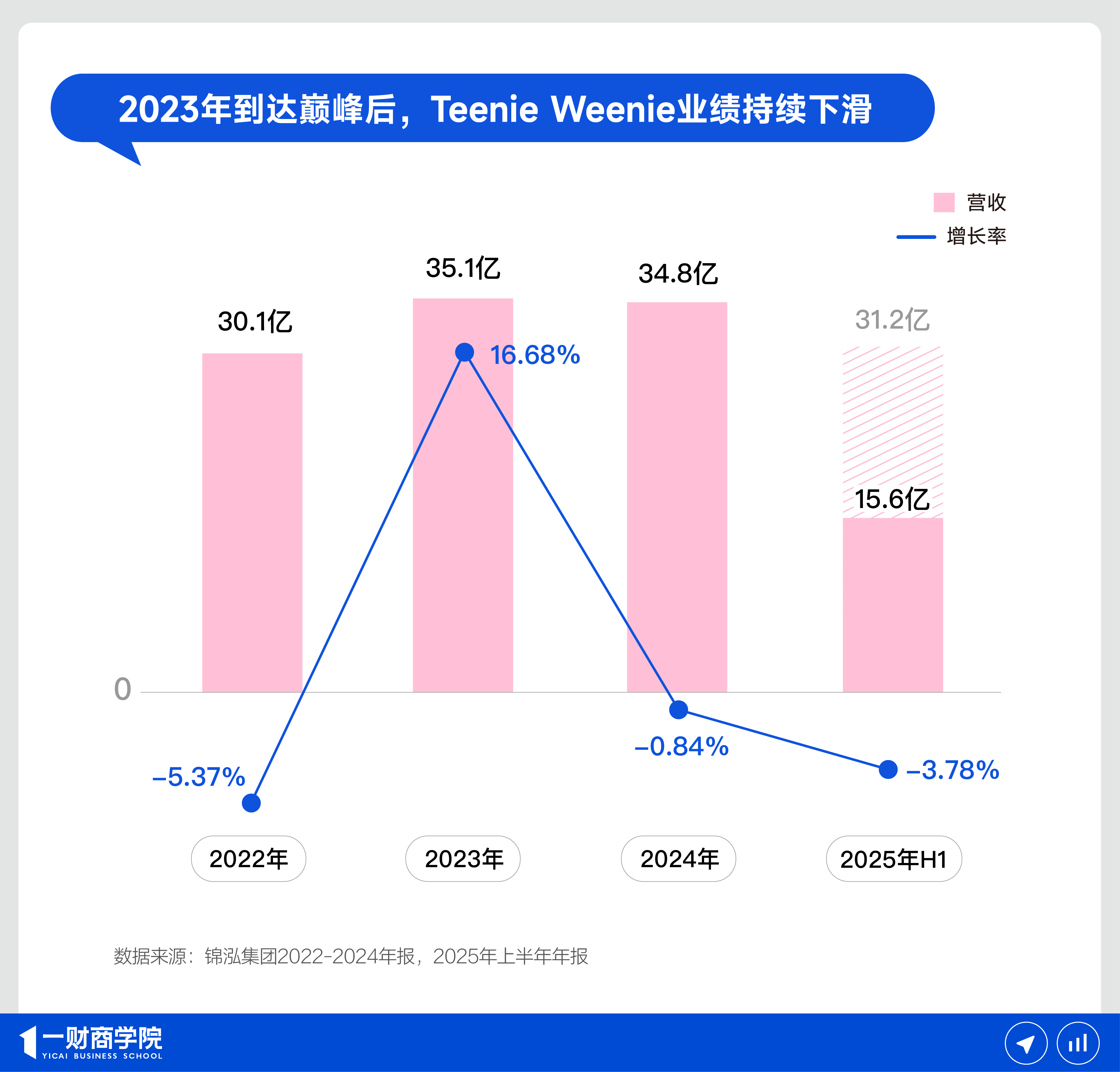这种溃败并不仅限于天猫单一平台。根据锦泓集团财报,自2024年起,Teenie Weenie的整体业绩持续下滑,今年第三季度其营收同比再度下滑2.3%。