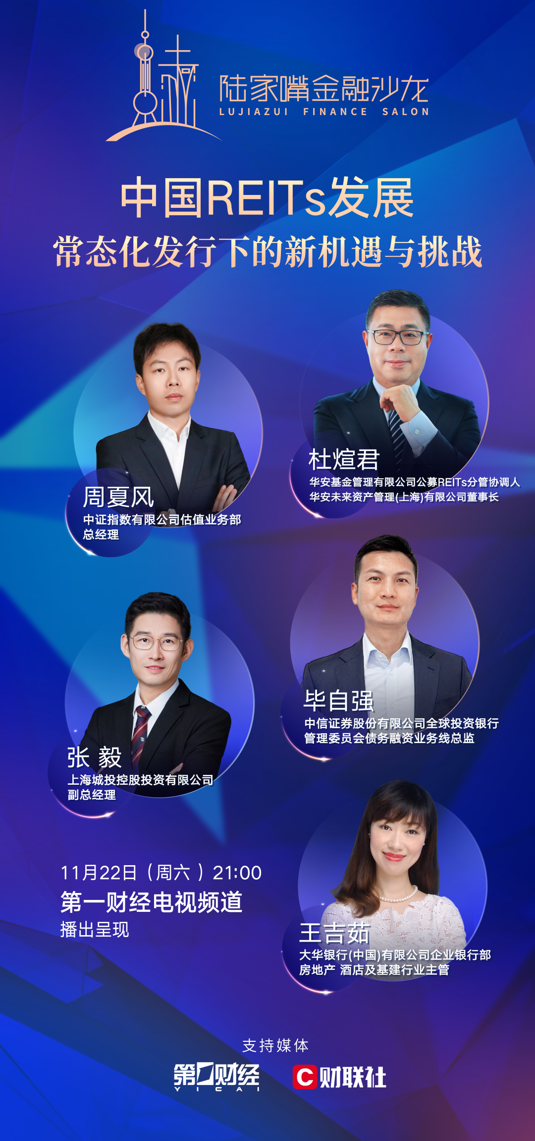 本场沙龙详细内容,敬请关注第一财经频道11月22日21:00、11月23日13:20播出的电视节目:《中国REITs发展:常态化发行下的新机遇与挑战》。