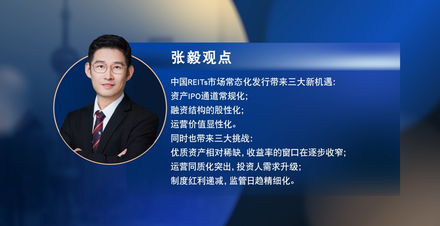上海城投控股投资有限公司副总经理张毅认为,中国REITs市场常态化发行带来了三大新机遇:1、资产IPO通道常规化;2、融资结构的股性化;3、运营价值显性化。同时,他表示,伴随REITs市场常态化发行而来的还有三大挑战:1、优质资产相对稀缺,收益率的窗口在逐步收窄;2、运营同质化突出,投资人需求升级;3、制度红利递减,监管日趋精细化。