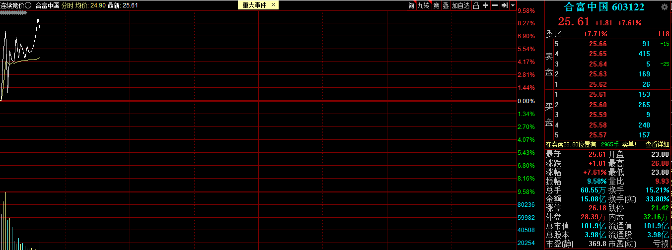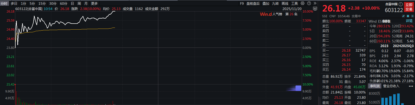 10:54 合富中国再度涨停,15个交易日累计涨超290%。