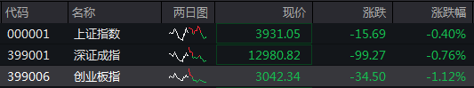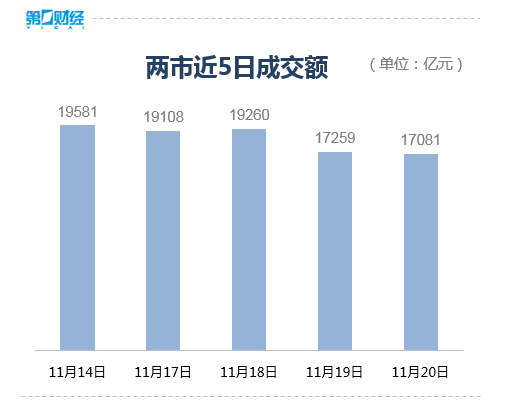 11月20日,A股三大指数高开低走,截至收盘,上证指数跌0.40%,深证成指跌0.76%,创业板指跌1.12%。