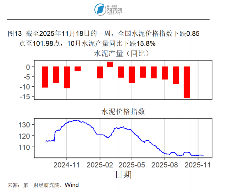 截至11月18日的钢坯价格较一周前上升1.37%,在过去一个月上升1.71%,较去年同期下降了2.94%。水泥价格在截至11月18日的一周下降了0.83%,过去一个月下降了0.59%,较去年同期下降了23.51%。动力煤价格在过去一个月上升了2.65%,较去年同期下降了2.24%。