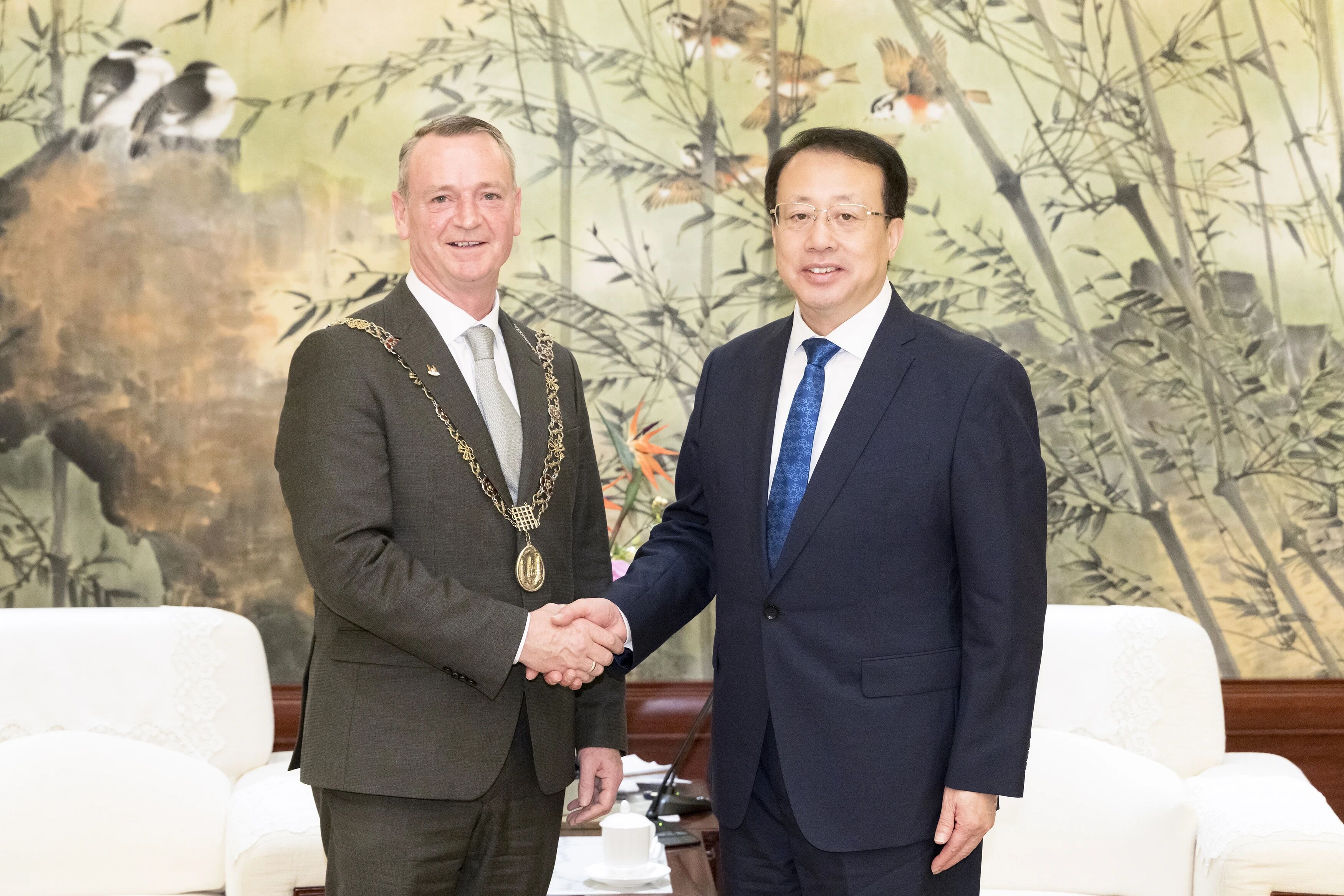 上海市市长龚正今天(11月21日)会见了爱尔兰科克市市长费格尔·丹内利一行。
