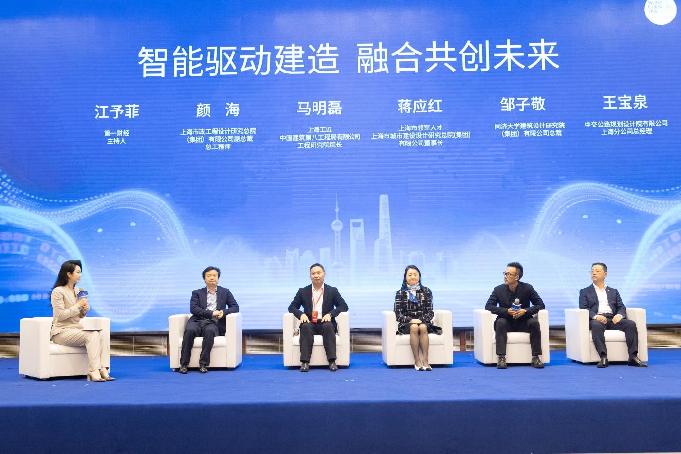 随后的圆桌论坛以“智能驱动建造,融合共创未来”为主题开展同台交流,将大会推向高潮。上海市领军人才、上海市城市建设设计研究总院(集团)有限公司董事长蒋应红,上海工匠、中建八局工程研究院院长、中建八局智能建造学院院长马明磊,同济大学建筑设计研究院(集团)有限公司总裁邹子敬,上海市政工程设计研究总院(集团)有限公司副总裁、总工程师颜海,中交公路规划设计院有限公司上海分公司总经理王宝泉等嘉宾聚焦智能建造落地难点、产学研协同机制等话题进行深度对话,为行业发展凝聚共识,推动行业智慧转型。