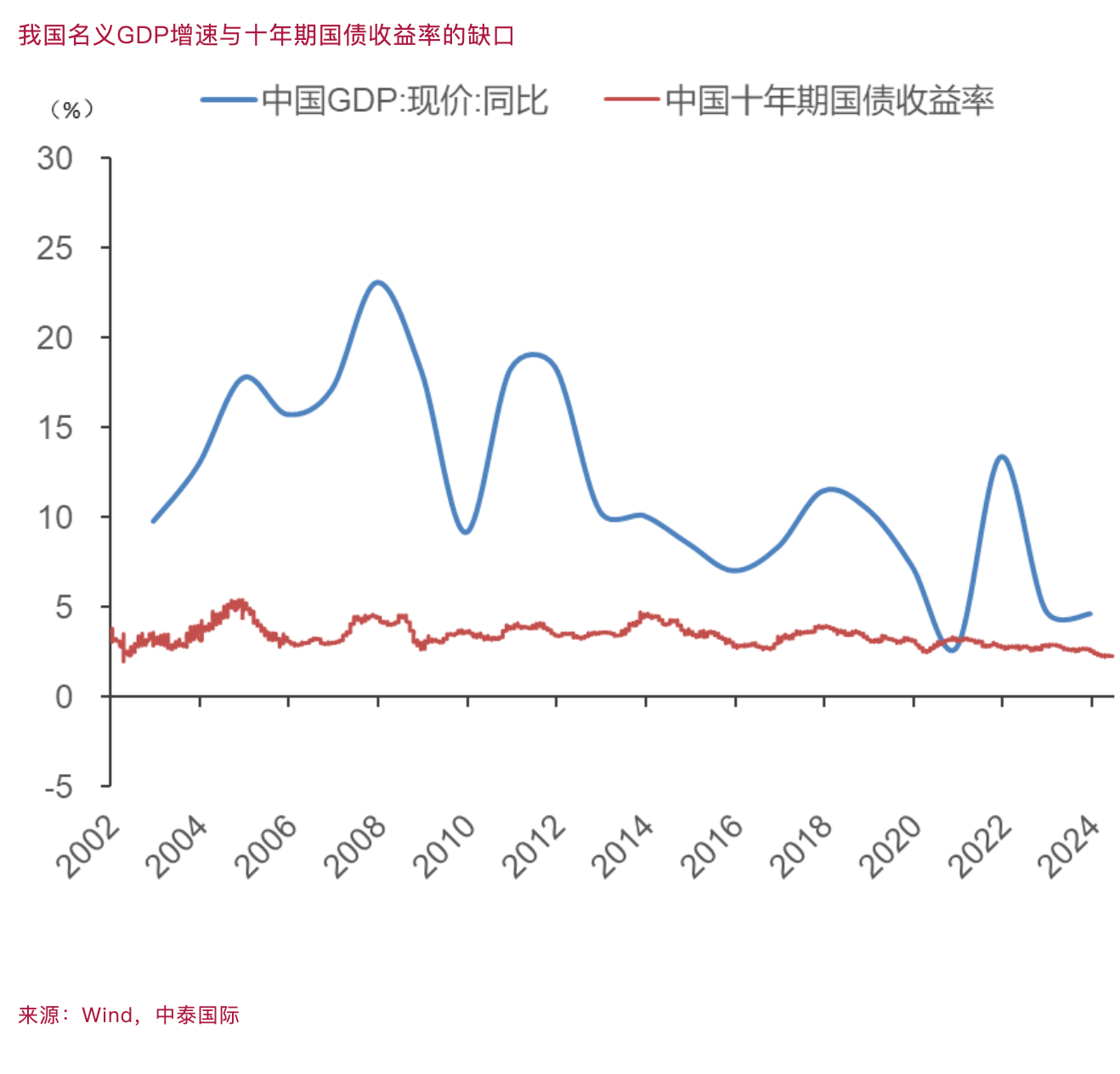 但我国在2021年之前,十年期国债收益率与名义GDP增速之间存在巨大缺口,说明利率水平长期偏低。原因很简单:利率是管控的,偏低的利率水平有利于投资,故中国长期的经济增长模式就是投资拉动。