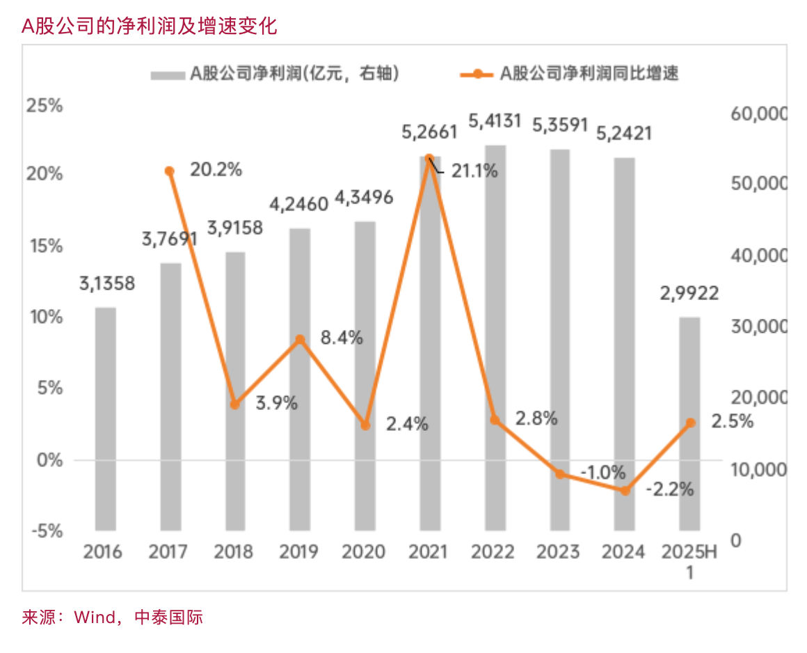 观察2000年以来的A股市场,发现除了2014~2015年由资金驱动的上涨,其余每次市场大幅上行均与净利润增速提高同步。所以,A股要形成慢牛的基础是企业盈利能够持续增长。