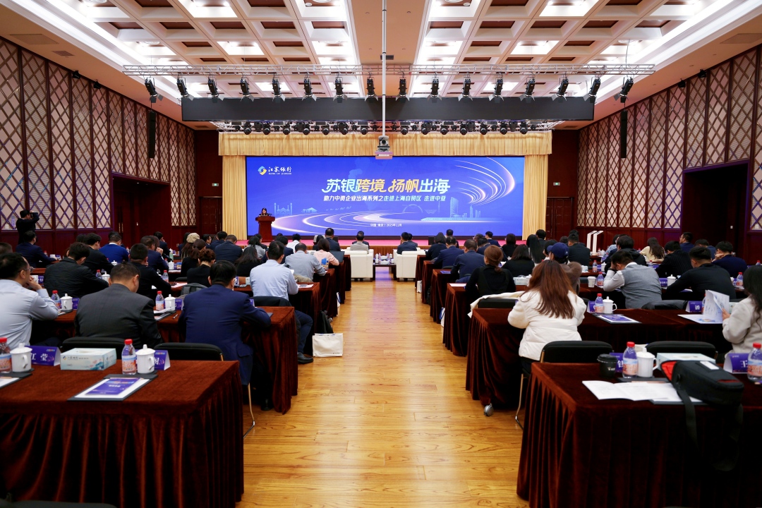 2025年11月20日下午,江苏银行在南京成功举办“苏银跨境·扬帆出海”助力中资企业出海系列之“走进上海自贸区”“走进中亚”专场活动。活动邀请江苏省商务厅、上海浦东新区商务委员会、苏豪控股集团、哈萨克斯坦贸易政策发展中心南京办事处等单位领导与行业专家,与百余名中资企业家代表共聚一堂、共话出海。