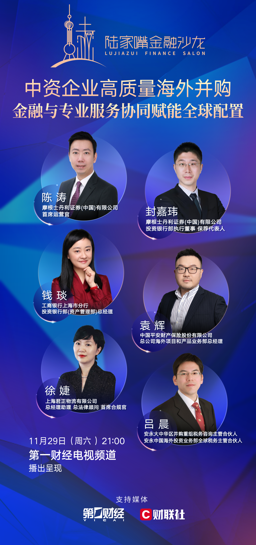 本场沙龙详细内容,敬请关注第一财经频道11月29日21:00、11月30日13:20播出的电视节目:《中资企业高质量海外并购:金融与专业服务协同赋能全球配置》。