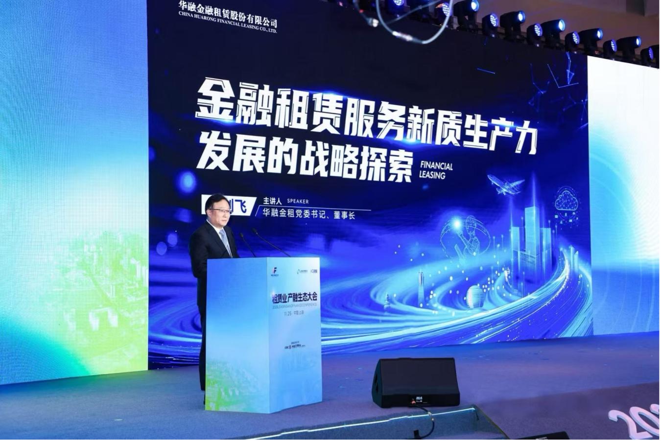 11月25日,由第一财经携手上海交易集团主办的“2025租赁业产融生态大会”在上海举行,上海市委常委、常务副市长吴伟出席大会并致辞。华融金融租赁股份有限公司(以下简称 “华融金租”)党委书记、董事长顾剑飞应邀出席大会作主旨演讲。本次大会聚焦租赁业与新质生产力的深度融合,汇聚监管机构代表、产业领军人物、金融同业及科创企业代表,共同探索产融协同新路径,助力现代化产业体系建设。