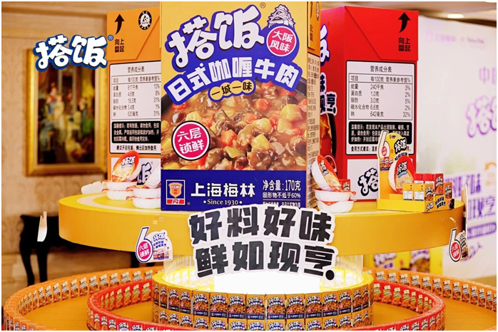针对都市快节奏生活需求,光明肉业旗下上海梅林推出中国首创餐食锁鲜菜搭饭系列,依托与国际包装巨头利乐合作的利乐全自动化生产线及先进锁鲜包装技术,实现从投料、灌装到封口的高效无菌作业,在提升产能的同时确保品质如一。同时,搭饭系列可在常温下长时间保鲜,仅需简单加热即可还原“鲜如现烹”的餐食体验,成功将传统品牌延伸至现代便捷生活场景。