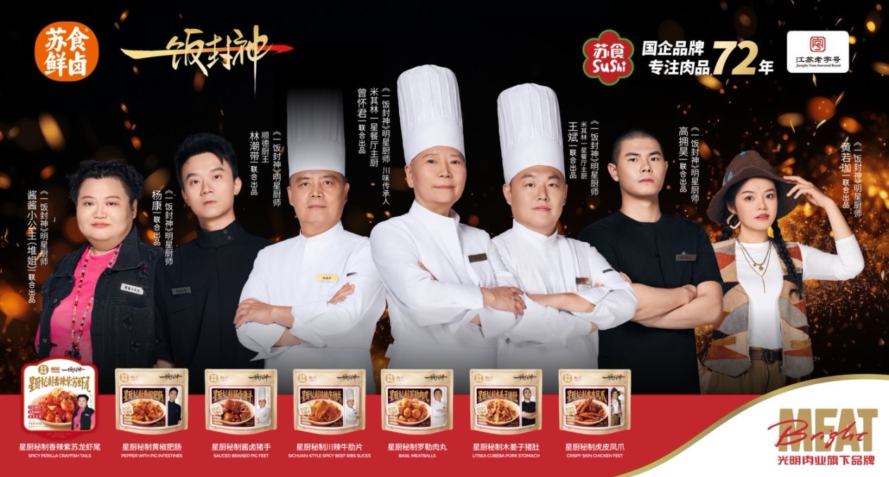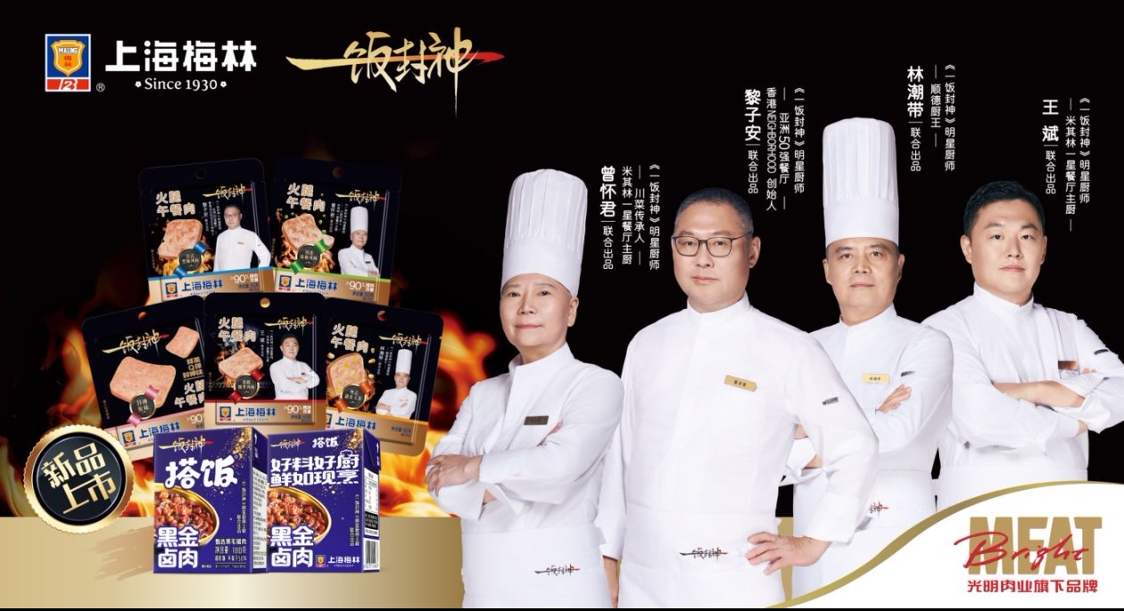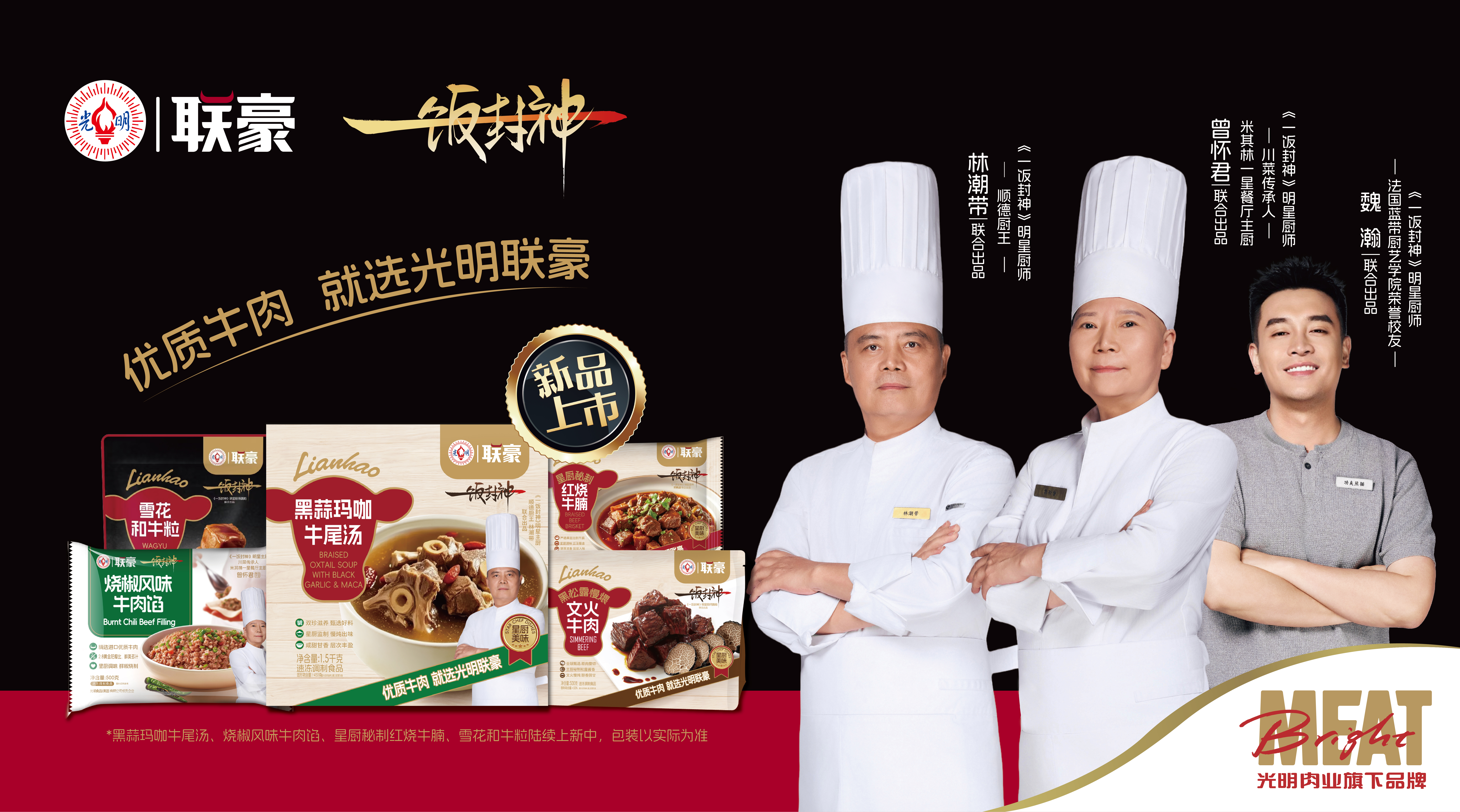 同时,光明肉业还与腾讯综艺《一饭封神》合作,通过与大厨共创多款联名产品,成功实现了新品的市场推广,同时也显著提升了品牌在年轻消费群体中的知名度,更通过美食与文化的共鸣,与消费者建立了深厚的情感链接,让品牌形象更加亲切、富有活力。