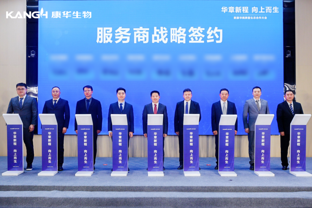 在现场嘉宾见证下,康华生物与多家合作伙伴及专业机构签署战略协议:康华生物与上药控股、上药科园签署了合作协议,并与八家服务商达成战略合作。各方将在市场布局、渠道拓展等环节为新康华生物提供支持。