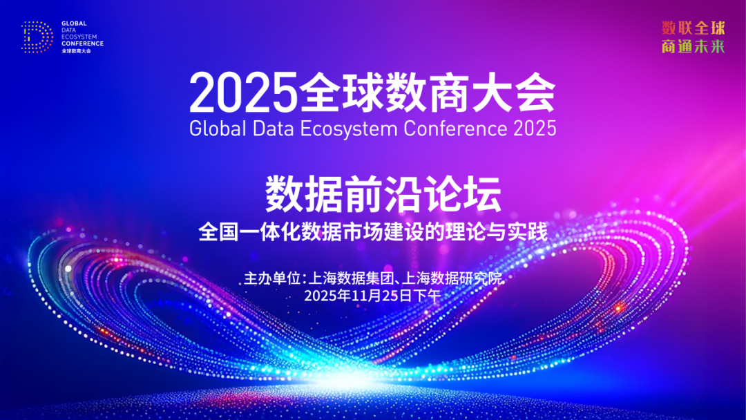 11月25日,以“数联全球 商通未来——乘数无界♾️”为主题的2025全球数商大会于上海国际会议中心盛大启幕。当日下午,由上海数据集团、上海数据研究院主办的“数据前沿”论坛成功举行。论坛以“全国一体化数据市场建设的理论与实践”为主题,深入探讨数据市场建设的战略导向、发展现状与实践路径。