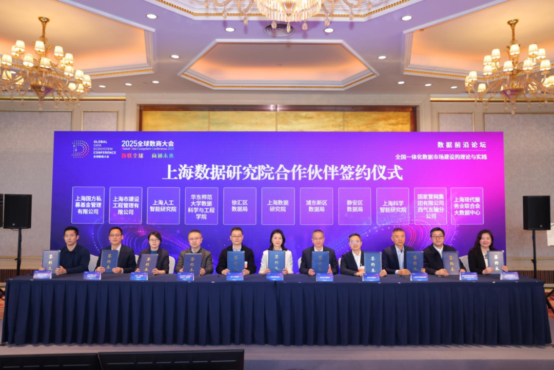 论坛期间,上海数据研究院与浦东新区数据局、静安区数据局、徐汇区数据局、国家管网集团西气东输公司、上海科学智能研究院、华东师范大学数据科学与工程学院、上海人工智能研究院、上海市建设工程管理有限公司、上海国方私募基金管理有限公司、上海现代服务业联合会大数据中心等10家单位完成战略合作签约,覆盖政产学研用各方主体,筑牢生态协同底座。