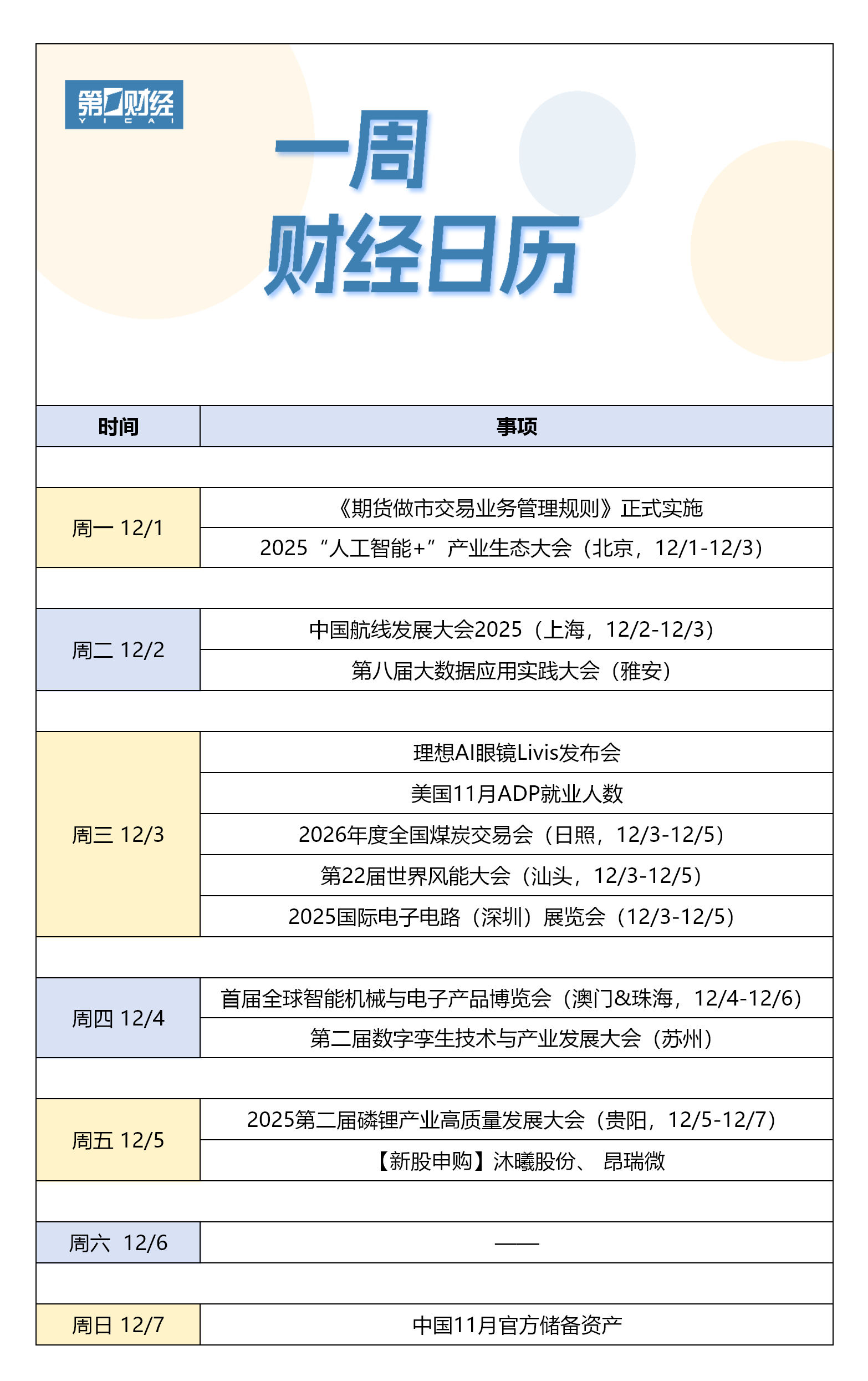 11月官方储备资产数据将公布;理想AI眼镜将发布;沐曦股份将开启申购……