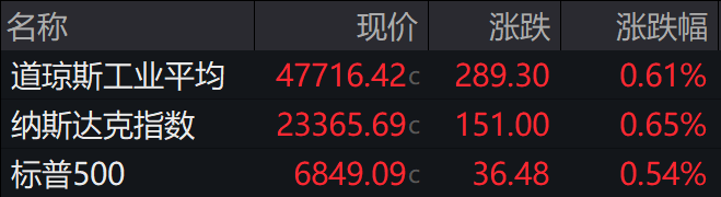 当地时间上周五,美股三大股指收高,道指涨近300点。截至收盘,道指涨0.61%,纳指涨0.65%,标普500指数涨0.54%。