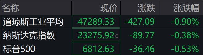 当地时间周一,美股三大股指结束五连阳。截至收盘,道指跌0.90%,纳指跌0.38%,标普500指数跌0.53%。芝加哥期权交易所波动率指数(VIX)上涨5.5%,至17.23。
