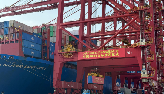 据央视新闻,今天上午,随着一个集装箱成功起吊,宁波舟山港2025年集装箱吞吐量成功达到4000万标准箱,这也是宁波舟山港年集装箱吞吐量首次突破4000万标准箱。