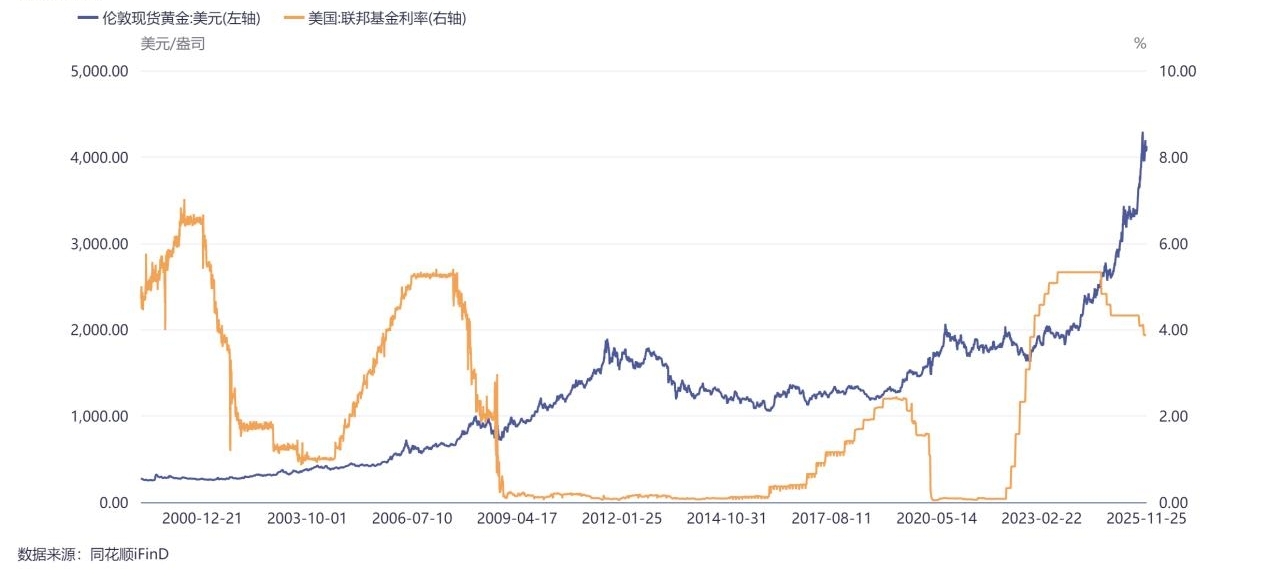 图2 美国联邦基金利率与金价图(数据来源 IFind)